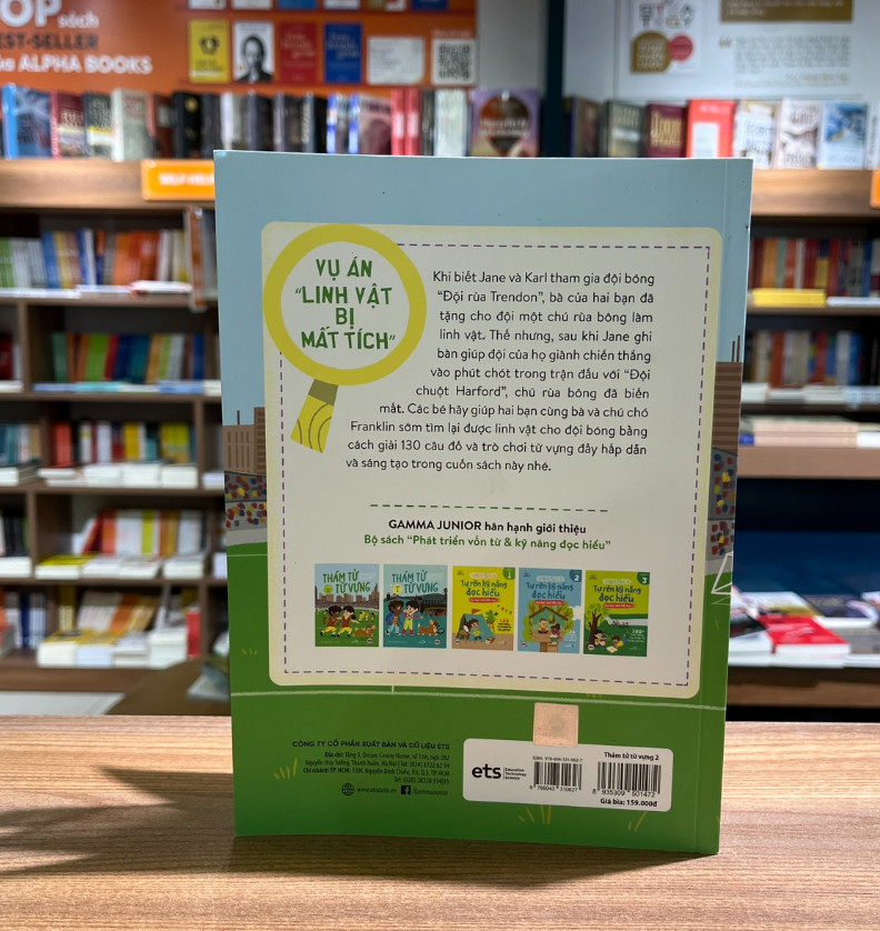 Ở cuốn Thám tử từ vựng 2, vụ án mới sẽ diễn ra trong thành phố, ngay giữa một trận bóng đá. Tương tự cuốn 1, cuốn 2 sẽ xoay quanh các chủ đề thú vị và hữu ích, từ các động vật kỳ lạ cho đến những vật ở ngoài không gian. Con cũng sẽ được học về từ đồng nghĩa nữa. Sau khi giải xong các câu đố trong sách, đáp án sẽ tiết lộ những chữ cái bí mật để giúp con phá được vụ án “Linh vật bị mất tích”."